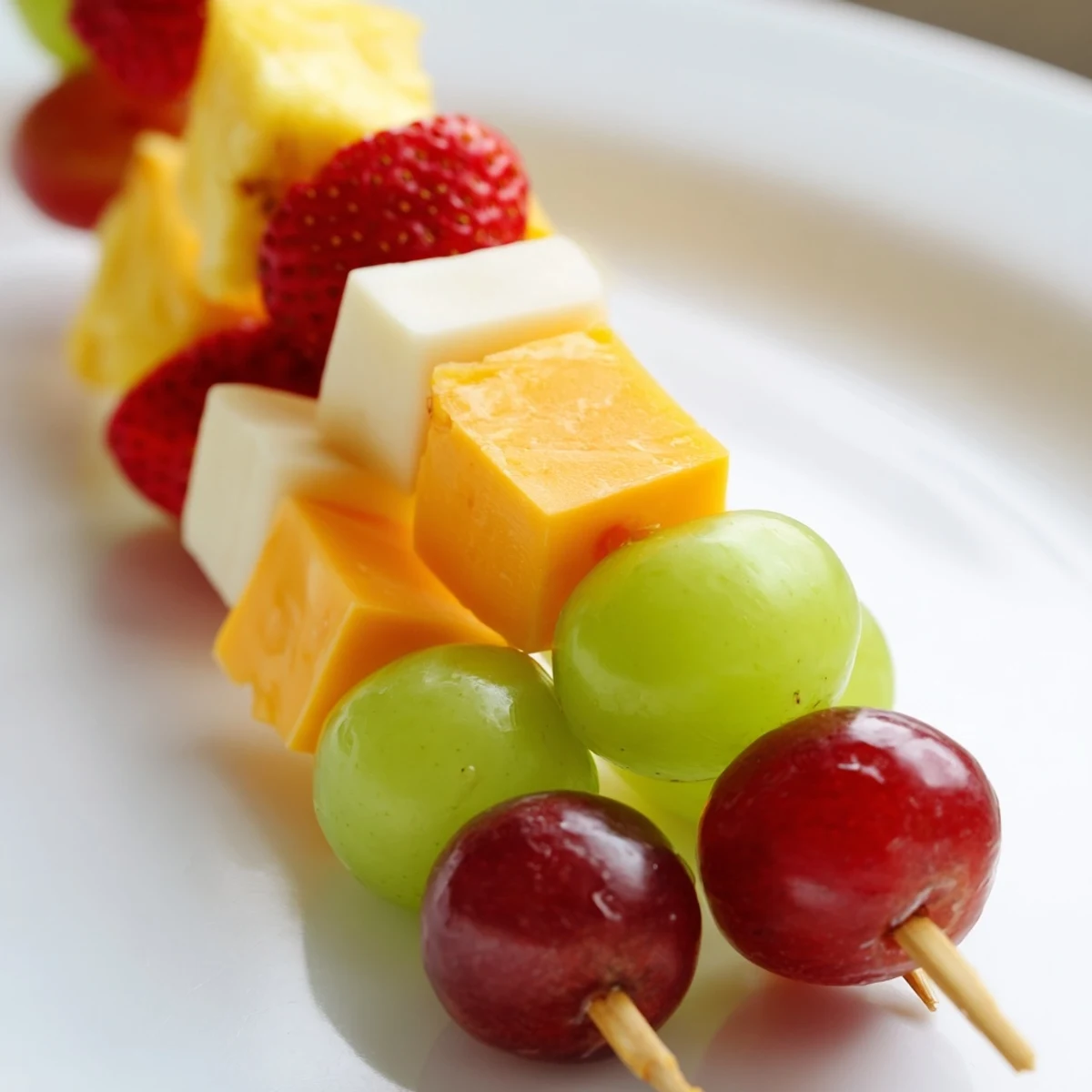 Melon balls, kiwi slices, apple chunks (tossed in lemon juice), berries, or even grapes work beautifully. Choose fruits that hold their shape when threaded onto skewers.