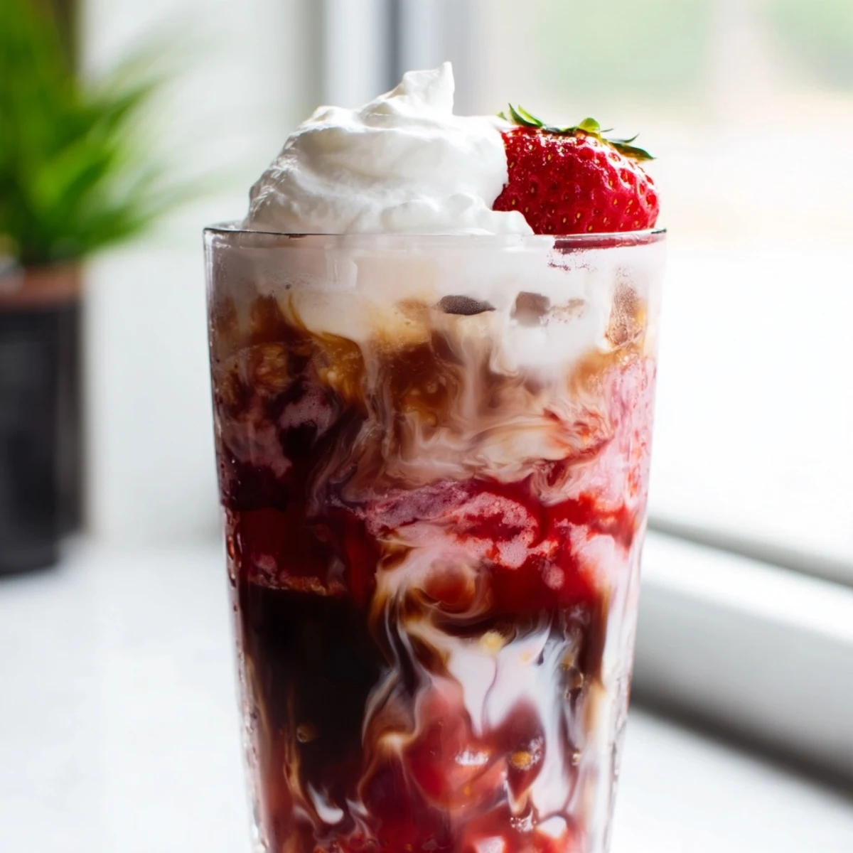Pour the strawberry cream mixture over ice first, then slowly drizzle the cold brewed coffee down the side of the glass or over the back of a spoon. This technique creates beautiful layered streaks rather than immediately blending everything together.